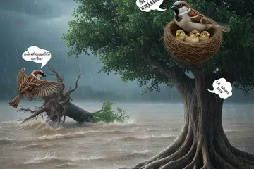 ஆற்றங்கரை ஓரமாக இரண்டு மரங்கள் இருந்தன. மழைக்காலம் நெருங்கிக்கொண்டு இருந்தது.