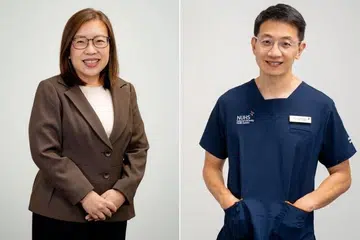 சிங்கப்பூர்த் தேசியப் பல்கலைக்கழகத் தலைவர் டான் எங் சாயின் படத்தையும் பல்கலைக்கழகச் சின்னத்தையும்