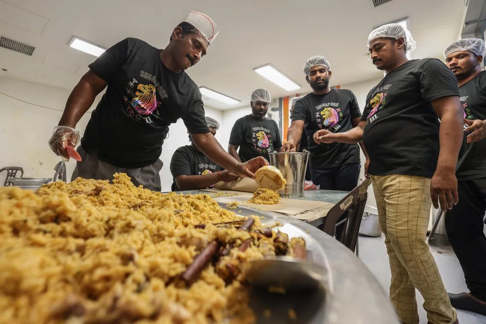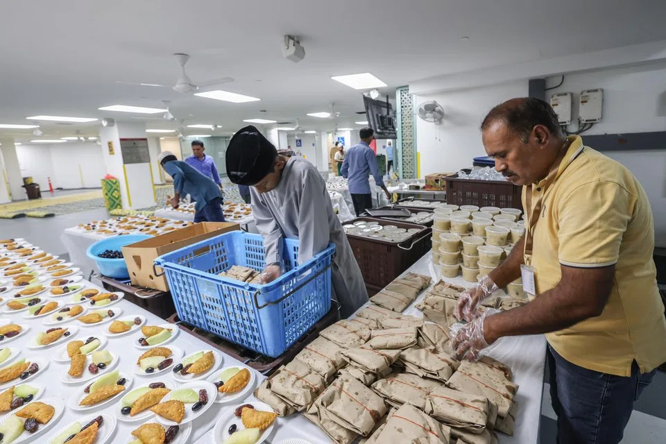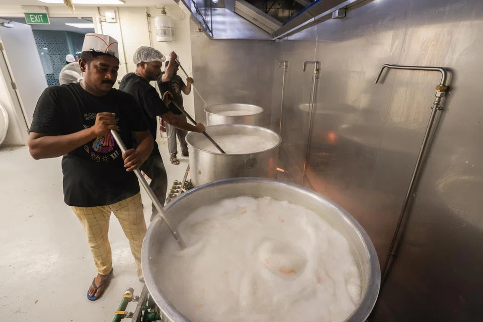 பள்ளிவாசலின் சமையலறையில் சமையற்கலைஞர்கள் ஏழு பேர், இந்த உணவுப் பொருள்களை ரமலான் மாதத்திற்காகத் தயாரிக்கின்றனர். தஞ்சாவூரைச் சேர்ந்த முத்துப்பேட்டையிலிருந்த வந்த இவர்கள் சிங்கப்பூர்ப் பள்ளிவாசலில் கஞ்சி தயாரிப்பது இதுவே முதல் முறை.