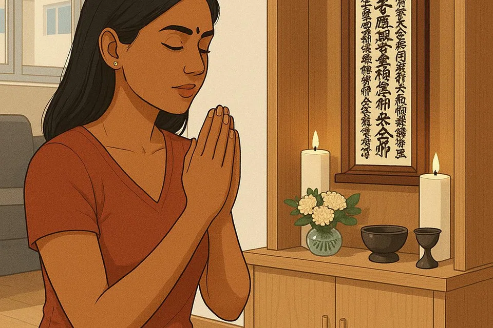 நண்பர் ஒருவரும் அவருடைய கணவரும் சிங்கப்பூர் சோக்கா சங்கத்தின் நிகழ்ச்சிகளுக்கு உஷாவை அழைத்துச் சென்றபோது உஷாவுக்கு நிச்சிரன் பெளத்தம் பற்றித் தெரிந்துகொள்ளும் வாய்ப்புக் கிட்டியது.