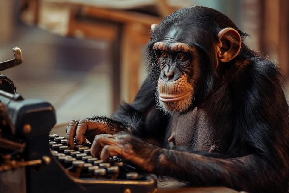ஒரு சிம்பன்சி தனது முழு வாழ்நாளிலும் ‘வாழைப்பழம்’ என்ற வார்த்தையை வெற்றிகரமாகத் தட்டச்சு செய்வதற்கான வாய்ப்பு ஐந்து விழுக்காடு மட்டுமே என்கிறது இந்த ஆய்வு. அதேநேரம், ‘நான் ஒரு சிம்பன்சி, அதனால் நான் இருக்கிறேன்’ (I chimp, therefore I am) போன்ற ஒரு வாக்கியத்தை உருவாக்கும் வாய்ப்பு 10 மில்லியன் பில்லியன் முறைகளில் ஒருமுறைதான் என்றும் இந்த ஆராய்ச்சி சுட்டிக்காட்டுகிறது.