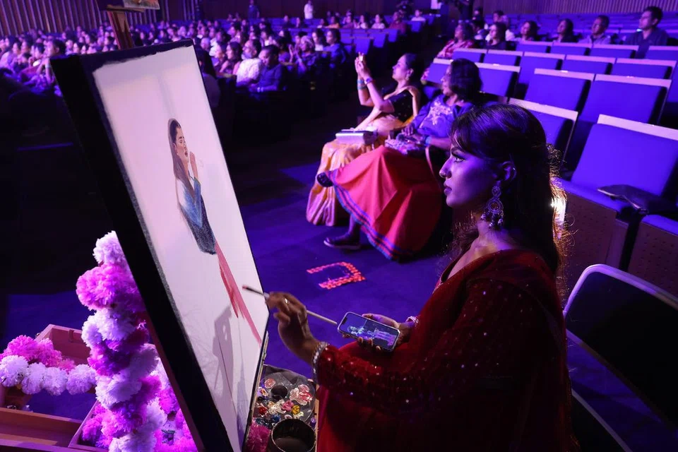 புதுமுயற்சியாக நிகழ்ச்சியில் அமைந்த பல அம்சங்களில் பாடகி சின்மயியை நேரில் கண்டு சித்திரமாக்கினார் உள்ளூர் கலைஞர் கஸ்தூரி சஞ்சய் நாயர், 28.