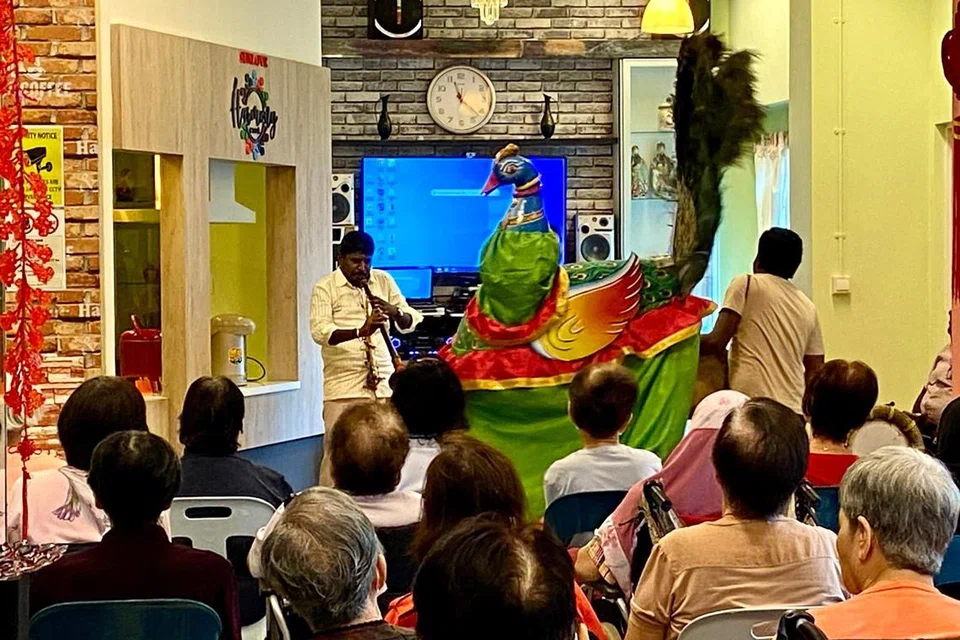 சன்லவ் அமைப்பின் வாம்போ வியூ முதியோர் பராமரிப்பு நிலையத்தில் நடைபெற்ற பொங்கல் கொண்டாட்டத்திற்காக இந்தியாவைச் சேர்ந்த கிராமியக் கலைஞர்கள், முதியோர் முன்னிலையில் நடனமாடி மகிழ்வித்தனர்.