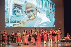 வியோலா, செல்லோ என மேற்கத்திய செவ்விசைக் கருவிகளுடன், குழலும் வீணையும் சேர்ந்து இனிய நாதங்களை ஒலித்தன.