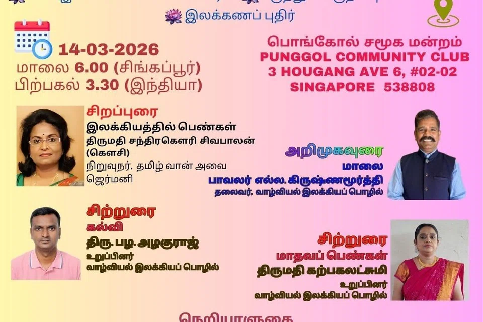 அமைப்பின் 101வது சந்திப்பான அந்நிகழ்ச்சி, ஹவ்காங் அவென்யூ 6, எண் 3, பொங்கோல் சமூக மன்ற அரங்கில் மாலை 6 மணிக்கு நடைபெறும். வழக்கமான இலக்கியச் சிற்றுரைகள், தாய்-சேய் இணைந்து படைக்கும் “வேரும் விழுதும்” உள்ளிட்ட அங்கங்கள் இடம்பெறும்.