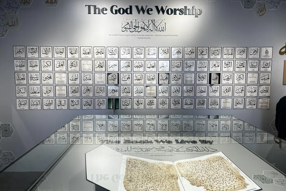 நடுச் சுவரில், ‘அல்லாஹ்வின் 99 அழகிய திருநாமங்கள்’ உள்ளன. நிலையத்தின் நடுவில் புனித குரானின் ஆகப் பழைமையான கையெழுத்துப் படிகளில் ஒன்றின் நகலைக் காணலாம்.
