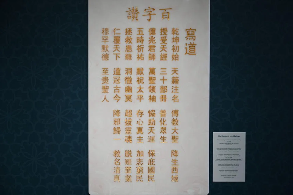 வலப்புறச் சுவரில், நபிகள் நாயகம், இஸ்லாம் பற்றி மிங் வம்ச மன்னர் ‘மாண்டரின்’ மொழியில் எழுதிய பாராட்டுக் கவிதை உள்ளது.