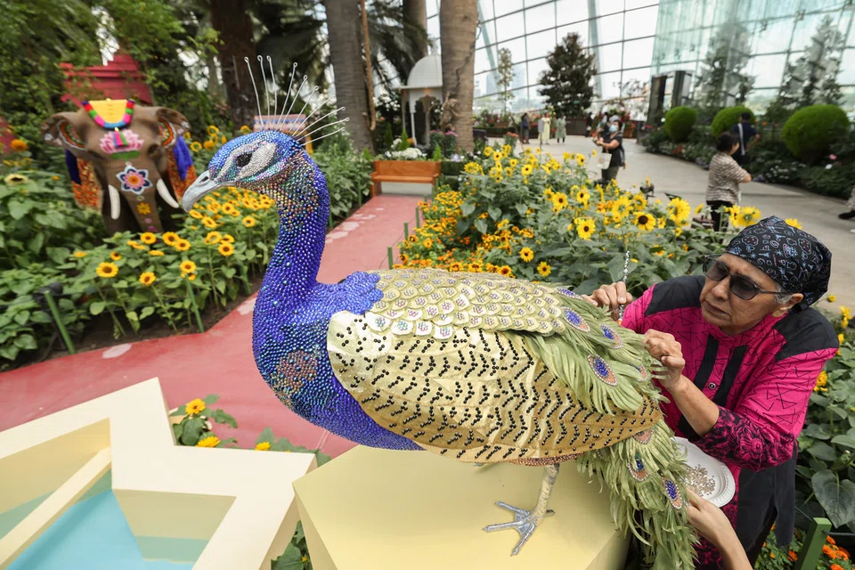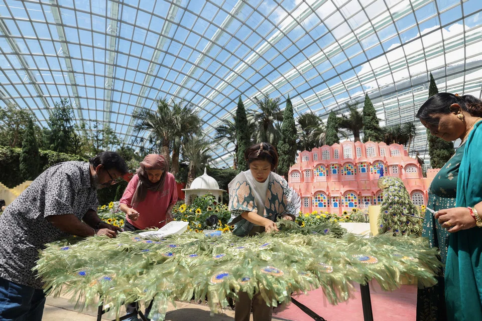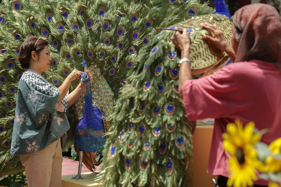 அக்டோபர் 22ஆம் தேதி பொதுமக்களுக்காகத் திறக்கப்படவுள்ள கண்காட்சியின் அதிகாரபூர்வத் தொடக்கத்தை முன்னிட்டு, கண்காட்சியின் மையத்திலிருக்கும் இரண்டு பிரம்மாண்டமான மயில் சிற்பங்களுக்கு உயிரூட்ட சிண்டாவின் முதிய பயனாளிகள் வியாழக்கிழமை (அக்டோபர் 16) கைகொடுத்தனர்.