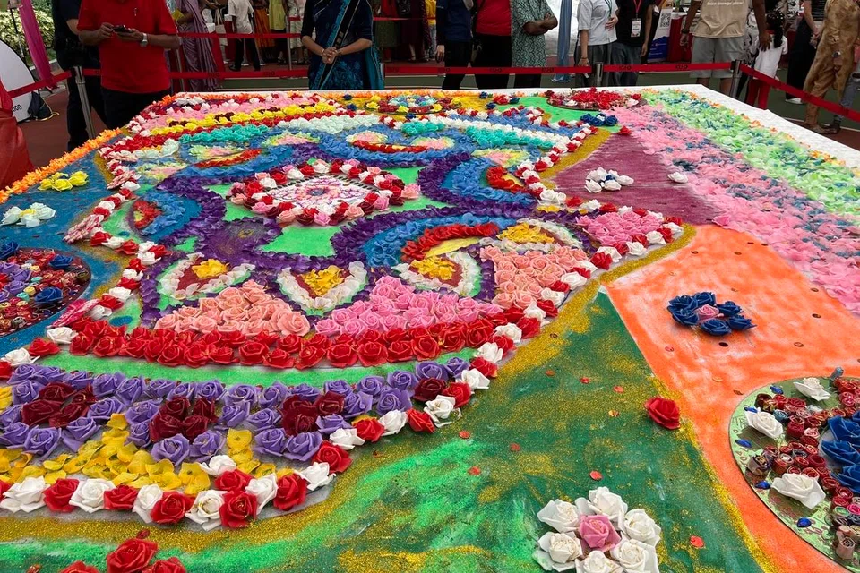 அதற்குப் பொறுப்பேற்ற ஏற்பாட்டுக் குழுவைச் சேர்ந்த அனுபிரியா பன்னீர்செல்வன், 40, “தீபாவளி நிகழ்ச்சியின்போது இதேபோன்ற அலங்காரம் செய்தோம். இம்முறை பெரிய கோலமிடலாம் என முடிவெடுத்தோம். ஏறத்தாழ ஆறு பேர் இணைந்து மூன்று நாள்கள் இப்பணியில் ஈடுபட்டோம். சிறப்பாக அமைந்துள்ளதில் மகிழ்ச்சி,” என்றார்.
