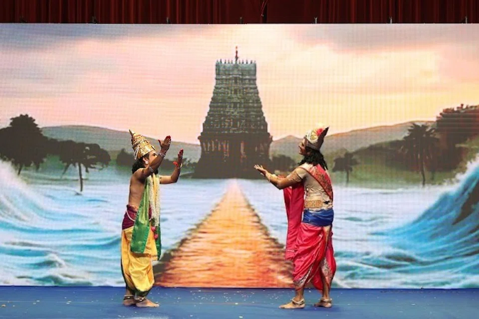 தவிர, பரதநாட்டியம், அடிமுறை நடனம், மோகினியாட்டம், கேரள மேளம் உள்ளிட்ட அங்கங்களையும் நாடகம் கொண்டிருந்தது.