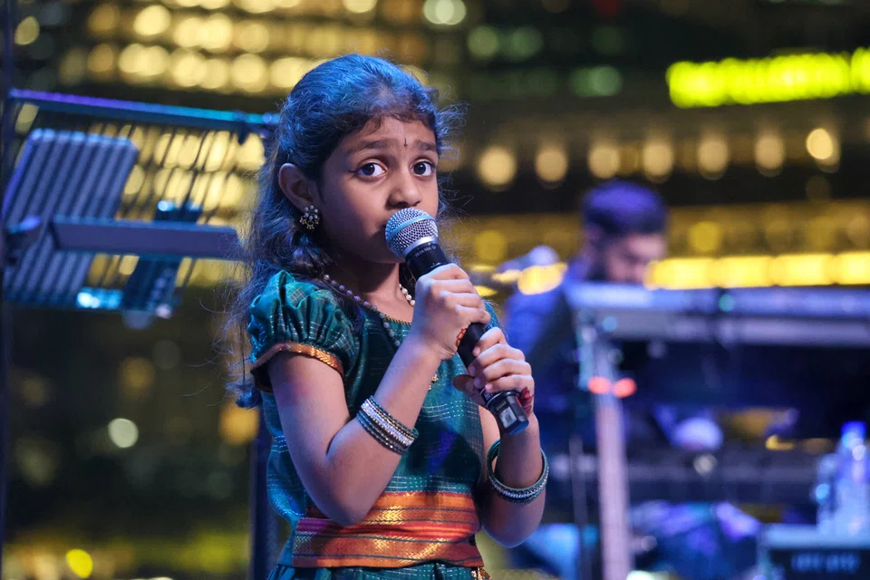 அக்ஷரா கெளஷிக் எனும் 5 வயதுச் சிறுமி ஒரு பாடலைப் பாடி அசத்தினார்.