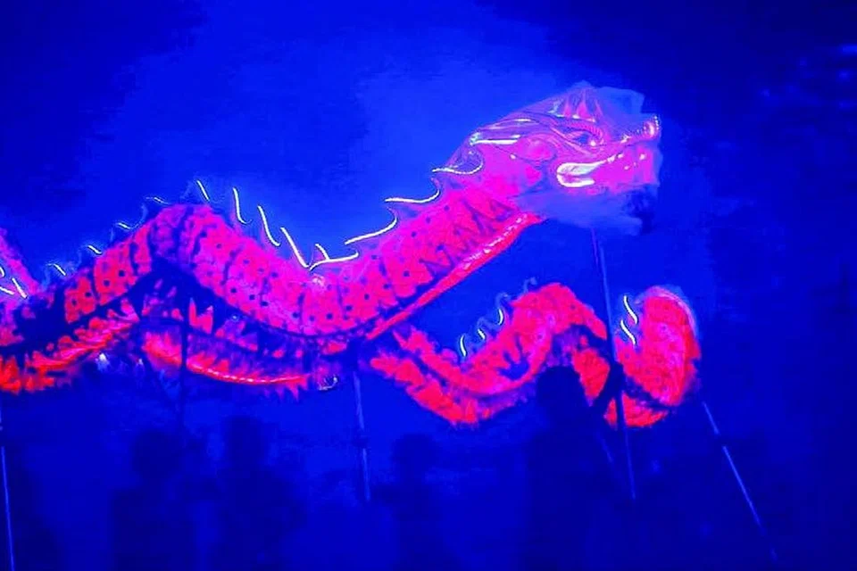 வெள்ளிக்கிழமை மாலை கொட்டிய மழையைத் தாண்டி, எழுந்த பல வண்ண விளக்கொளி நிகழ்ச்சி நடைபெற்ற 'எஃப்1' கார் பந்தய வளாகக் கட்டடத்தை ஒளிவெள்ளத்தில் நிறைத்து, இரவைப் பகலாக்கியது. பச்சை, வெள்ளை, தங்க நிறங்களாலான கடல்நாக வடிவ மிதவையில் மழை ஆடை அணிந்து துணைவியார் ஹோ சிங்குடன் வந்த பிரதமர் லீ சியன் லூங் கொண்டாட்ட மகிழ்ச்சியில் திளைத்தார். சிங்கப்பூரின் பல்லின சமூகத்தைக் கொண்டாடும் நோக் கிலும் சீனப் புத்தாண்டுக் கொண்டாட்டமாகவும் ஆண்டுதோறும் நடைபெற்று வரும் 'சிங்கே' சாலை அணிவகுப்பில் இவ்வாண்டு சீனா, ரஷ்யா, இந்தோனீசியா, தென் கொரியா போன்ற நாடுகளைச் சேர்ந்த 800க்கும் மேற்பட்ட கலைஞர்கள் தங்கள் கலாசாரங்களை வெளிப்படுத்தும் வகையில் பல்வேறு நடனங்களைப் படைத்தனர்.