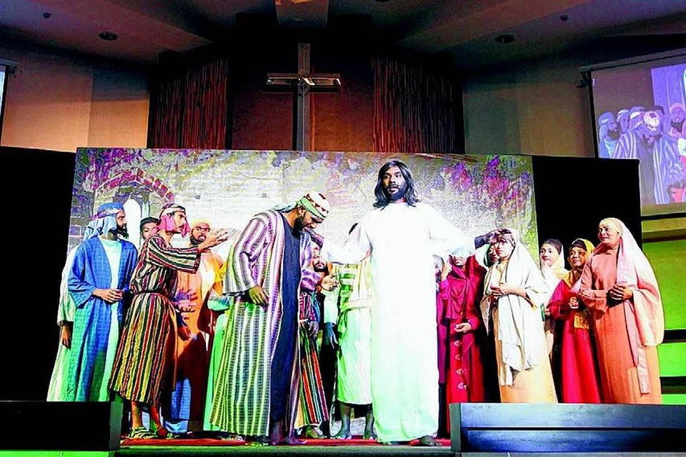 நாடகத்தில் இடம்பெற்ற ஒரு காட்சியில், தமது சீடர்களை முதன்முறையாக சந்திக்கும் உயிர்த்தெழுந்த கிறிஸ்து. செய்தியும் படமும்: திமத்தி டேவிட்