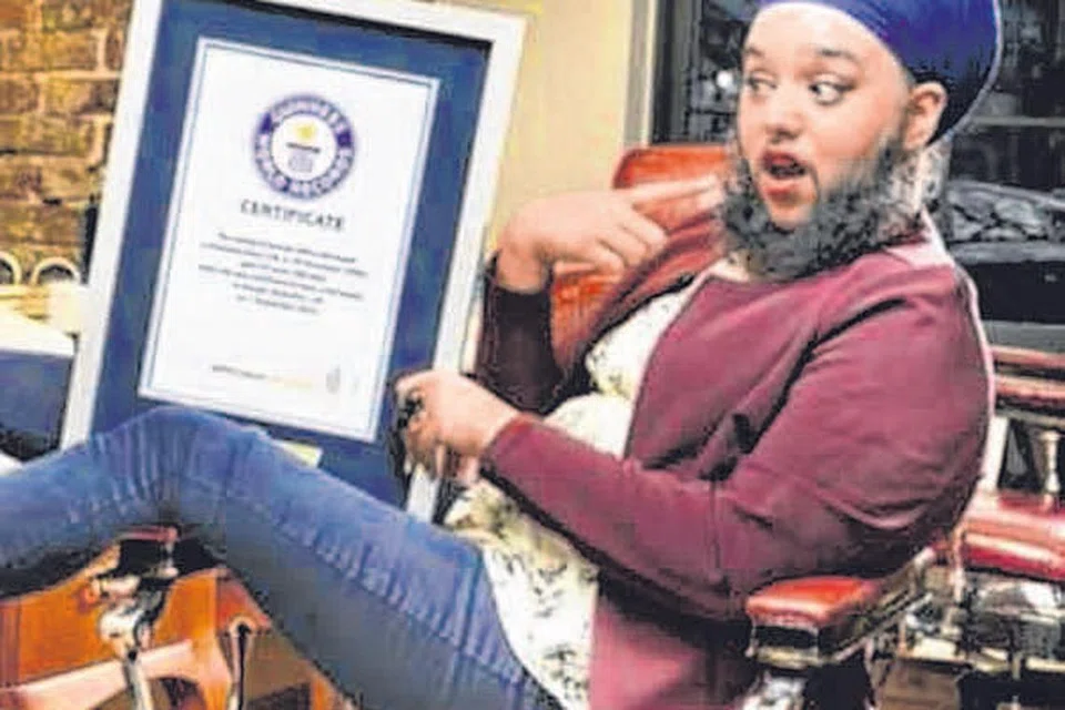 இளம் வயதில் தாடி, மீசை வளர்த்ததற்காக கின்னசில் இடம் பிடித்துள்ளார் ஹர்னாம் கவுர். படம்: இணையம்