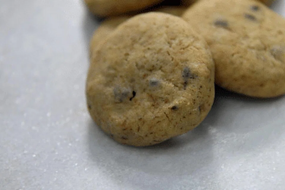 சாக்லெட் சிப்ஸையும் மாவுடன் கலக்கவும். பட்டர் பேப்பரில் 10 கிராம் அளவிற்கு மாவை உருண்டையாக உருட்டி தட்டில் வைத்து, லேசாக தட்டி தட்டையாக்கி 12 முதல் 15 நிமிடங்களுக்கு 180 டிகிரி செல்சியசில் அவனில் வைத்து எடுக்கவும்.