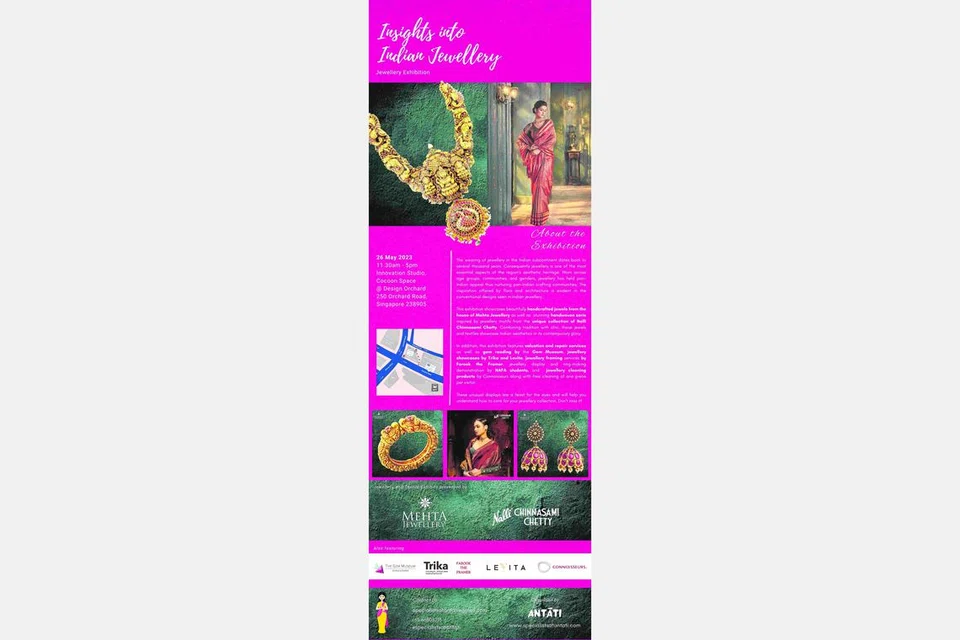 இந்திய நகைகளைப் பற்றி அறிந்துகொள்ள உதவும் கண்காட்சி வரும் வெள்ளிக்கிழமை நடைபெறுகிறது. இக்கண்காட்சியில் மேத்தா ஜூவல்லரியின் கைகளால் செய்யப்பட்ட பாரம்பரிய நகைகளும் நகை வடிவமைப்புகளைக் கொண்டு நெய்யப்பட்ட நல்லி சின்னசாமி செட்டியின் தனித்துவமான புடவைகளும் இடம்பெறுகின்றன. பாரம்பரியமும் தற்காலப் பாணியும் இணைந்த இந்த நகைகளும் புடவையும் இந்திய அழகியலை வெளிப்படுத்துகின்றன.