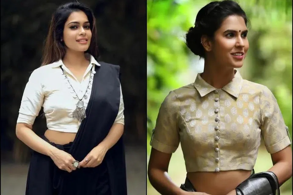 சட்டை போன்ற ரவிக்கை: சட்டை போன்ற ரவிக்கை இந்திய, மேற்கத்திய உடைகளின் சரியான கலவையாகும். இது காலர்கள், பொத்தான்களுடன் நேர்த்தியாக தோற்றம் அளிக்கிறது. இது உங்கள் புடவை அல்லது லெஹங்காவுடன் இணைந்தால் பார்க்க மிகவும் அழகாக இருக்கும்.