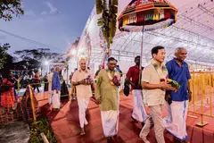 கோயில், கூடாரம் ஆகிய இடங்களுக்குச் செல்வதற்குமுன் காலணிகளை அகற்ற வேண்டும். அவற்றைக் கோயில் எதிர்ப்புறத்தில் உள்ள திடலில், அதற்கென ஒதுக்கப்பட்ட இடங்களில் வைக்கலாம்.