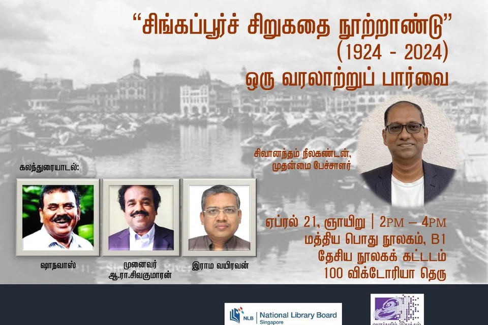 ஏப்ரல் 21ஆம் தேதி ஞாயிற்றுக்கிழமை, பிற்பகல் 2 மணி முதல் மாலை 4 மணி வரை மத்திய பொது நூலகத்தில் ‘சிங்கப்பூர்ச் சிறுகதை நூற்றாண்டு (1924-2024): ஒரு வரலாற்றுப் பார்வை’ எனும் நிகழ்ச்சி நடைபெறவுள்ளது.