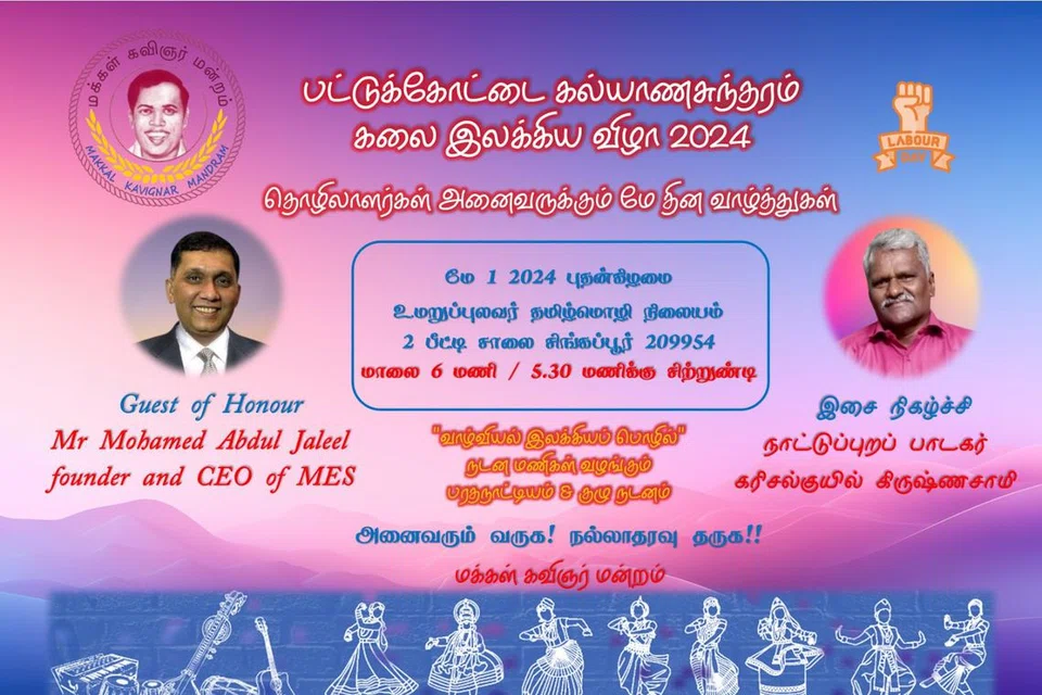 “அதனால், மே தினத்தன்று அவரது நினைவாக இவ்விழாவை ஏற்பாடு செய்கிறோம்,” என்றார் மக்கள் கவிஞர் மன்றச் செயற்குழு உறுப்பினர் எஸ்.ஜி.ராஜன்.