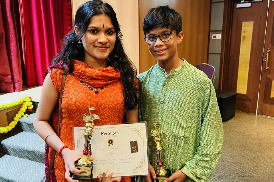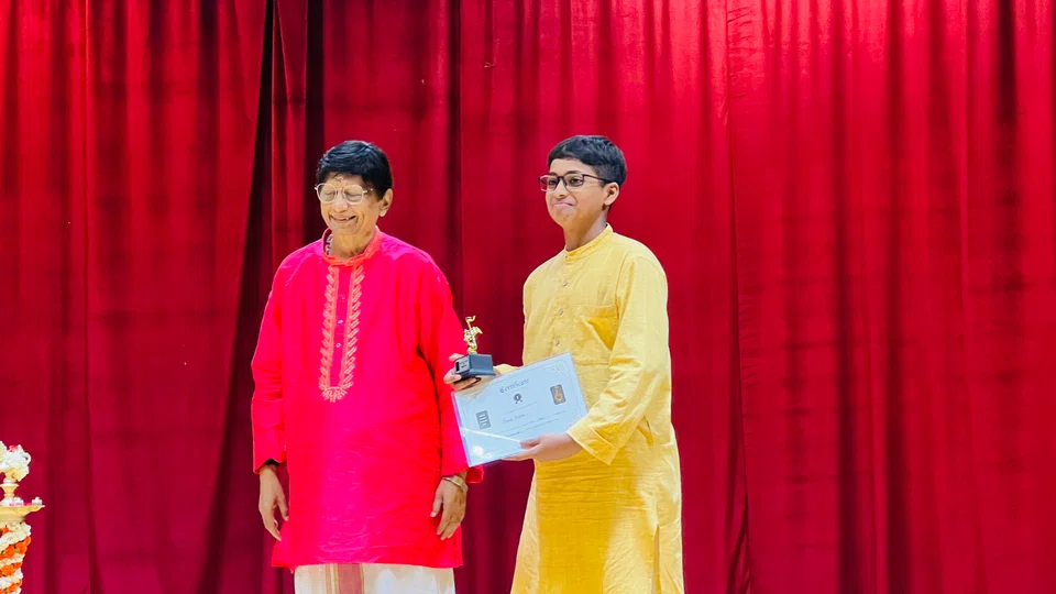 “இதுவே என் முதல் போட்டி. இதற்காக கடந்த ஒரு மாதமாகப் பயிற்சிசெய்தேன். நான் நான்கு ஆண்டுகளாகப் புல்லாங்குழல் கற்றுள்ளேன்,” என்றார் புல்லாங்குழல் வாசித்தல் போட்டியில் மூன்று பரிசுகளைப் பெற்ற புனீத் கிஷோர், 14.