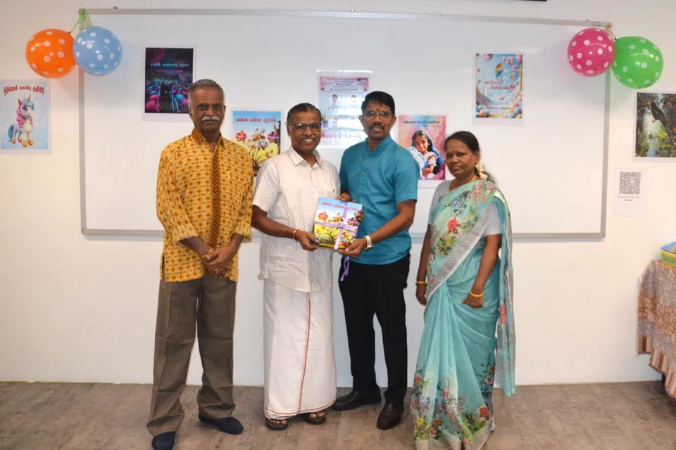 நூல்களை சிங்கப்பூர்த் தமிழாசிரியர் சங்கத் தலைவர் திரு. தனபால் குமார் வெளியிட, வளர்தமிழ் இயக்கத்தின் துணைத் தலைவர் திரு. ஜோதி மாணிக்கவாசகம் பெற்றுக்கொண்டார்.