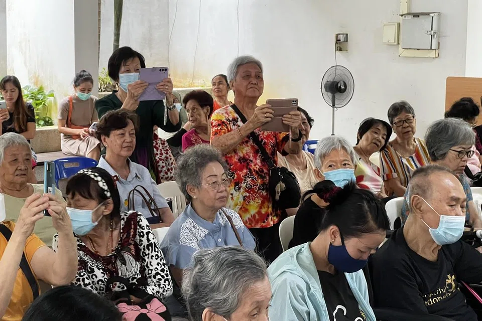 பால் பொங்கும் தருணத்தில் முதியோர் தங்கள் இருக்கையிலிருந்து எழுந்து காணொளிகள் எடுத்தபடியே, “பொங்கலோ பொங்கல்” என உரக்கக் கூவினர்.