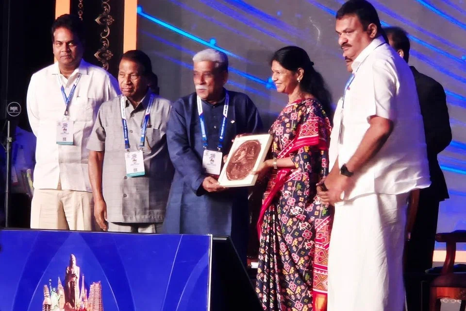 நாடாளுமன்ற முன்னாள் நியமன உறுப்பினர் இரா.தினகரன் அயலகத் தமிழர் தின மாநாட்டில் சிங்கப்பூர் சார்பில் கெளரவிக்கப்பட்டார். - படம்: ரவி சிங்காரம்