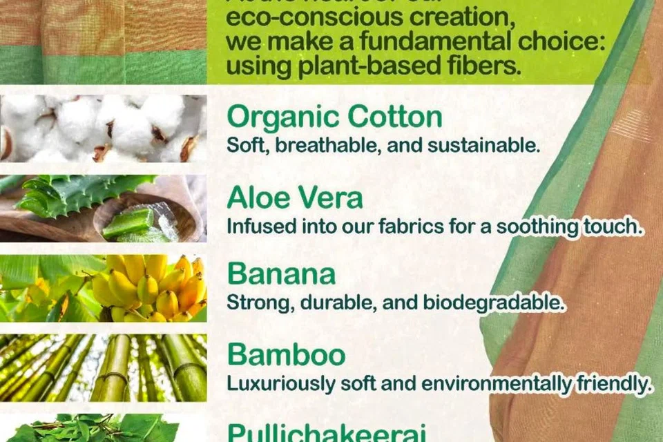 சேலைகளின் தயாரிப்பில் புளிச்சக் கீரை, கற்றாழை, வெட்டிவேர் போன்ற தாவரங்கள் சேர்க்கப்படுவதைக் கேள்விப்படும்போது நாம் வியந்து போகலாம்.