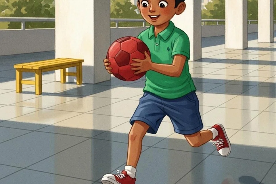 அடுக்குமாடிக் குடியிருப்பில் கவின் வசித்து வந்தான். அவனுக்குப் பந்து விளையாடுவது என்றால் கொள்ளை ஆசை. பள்ளி முடிந்து வீடு திரும்பியதும் பந்து விளையாட அடுக்குமாடி வீட்டின் கீழ்த்தளத்திற்குச் சென்றான். கீழ்த்தளத்தில் ‘பந்து விளையாடத் தடை’ என்ற அறிவிப்புப் பலகை வைக்கப்பட்டிருந்தது. ஆனால், அதைப் பொருட்படுத்தாமல் பந்தை எட்டி உதைத்து விளையாடத் தொடங்கினான் கவின்.