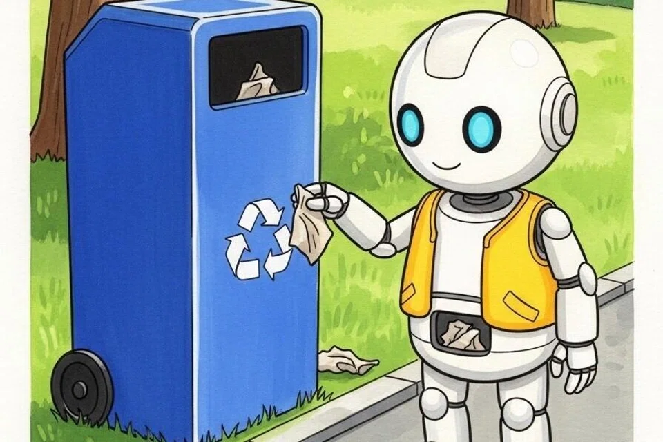 சறுக்கு மரத்தின் அடியில் கிடந்த மறுசுழற்சிப் பொருள்களை எடுத்து அதற்காக வைத்திருந்த நீல நிற மறுசுழற்சி பெட்டிக்குள் போட்டு, ‘சுற்றுச்சூழலைப் பாதுகாப்போம்’ என்று சொல்வது போல அது சத்தம் போட்டது.