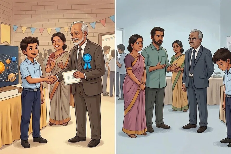 பள்ளியில் வருடாந்திர அறிவியல் கண்காட்சி நடைபெற இருந்தது. அப்துல்லா பல நாள்கள் யோசித்து, தன் சொந்த முயற்சியில் ஓர் அழகான ‘சூரிய குடும்பம்’ (Solar system) மாதிரியை உருவாக்கினான். ஆனால், இஸ்மாயில் விளையாட்டிலேயே காலத்தைக் கழித்ததால் எந்தப் படைப்பையும் செய்யவில்லை.