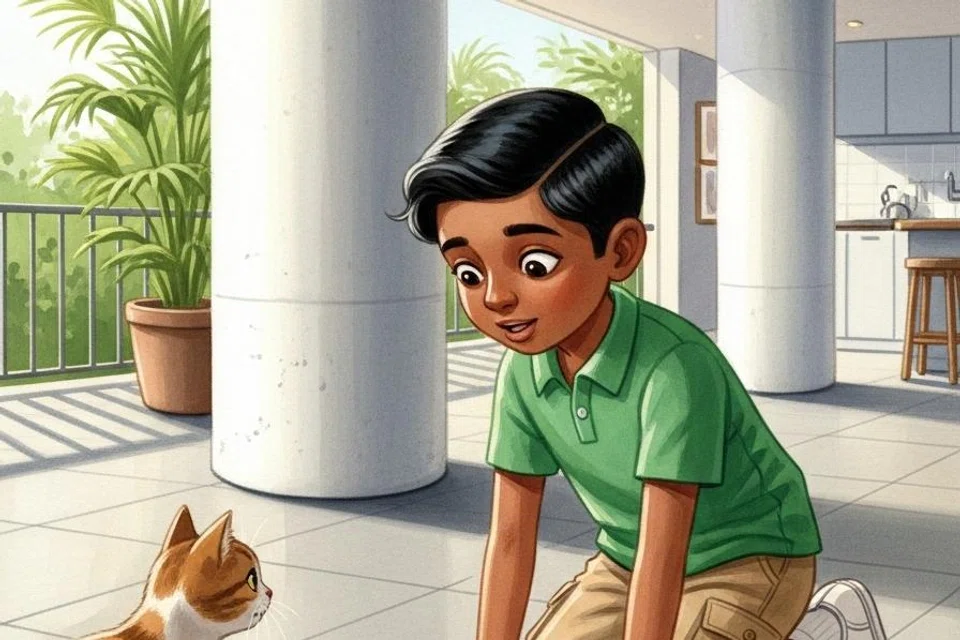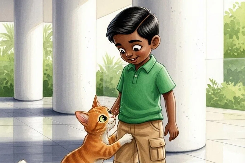 கபிலன் தொடக்கநிலை இரண்டில் பயிலும் மாணவன். அவன் தன் அம்மா மலருடன் அடுக்குமாடிக் குடியிருப்பின் கீழ்த்தளத்தில் நடந்து சென்று கொண்டிருந்தான்.