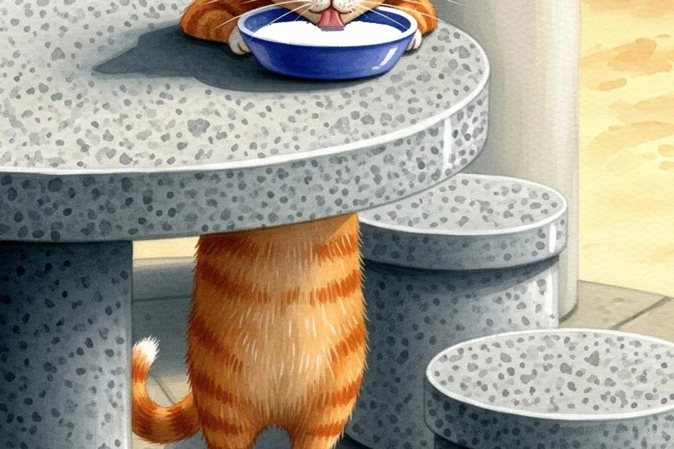 முதலில் அதன் பசியைப் போக்கவேண்டும் என்ற முடிவுக்கு வந்த கபிலன் ஓடிச் சென்று அம்மாவிடம் சிறிது பாலைக் கேட்டு வாங்கிக்கொண்டு கீழ்த்தளத்திற்குச் சென்றான். பூனை பதுங்கி இருந்த கல் மேசைக்கு மேலே அந்தப் பாலை வைத்துவிட்டு சிறிது தூரத்தில் போய் நின்றுகொண்டான்.