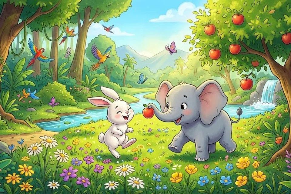 அப்போது அங்கே ‘அப்பு’ என்றொரு குட்டி யானை வந்தது. சின்டுவின் சோகத்தைப் பார்த்த அப்பு, தன் நீண்ட தும்பிக்கையை உயர்த்தி அந்த ஆப்பிளைப் பறித்து சின்டுவிடம் கொடுத்தது.