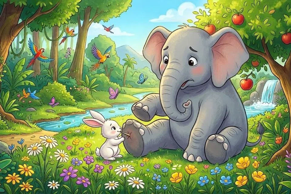 சில நாள்கள் கழித்து, காட்டில் நடந்து சென்றுகொண்டிருந்த அப்பு யானையின் காலில் ஒரு பெரிய முள் குத்திவிட்டது.