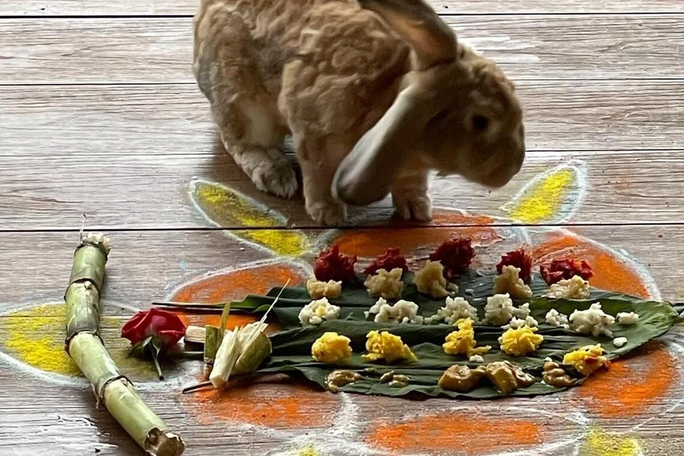 தமது செல்லப்பிராணி முயல் இதனைச் சாப்பிடுவதைக் கண்டு மகிழ்வதாக ஆரபி கூறினார்.