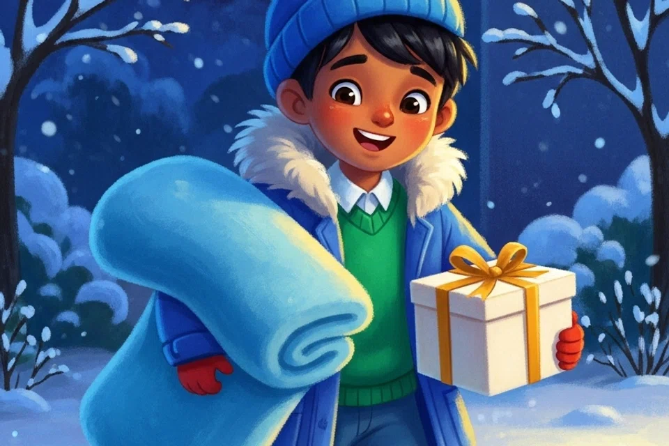 விடிந்தால் கிறிஸ்துமஸ். வெளியே கடும் குளிர் வாட்டியது. அவன் வீட்டிற்கு எதிரே இருக்கும் அன்பு என்ற சிறுவன் பெற்றோர் இல்லாமல் பாட்டியுடன் வாழ்ந்து வந்தான். அவனுக்கு நல்ல போர்வை கூட கிடையாது. அதைப் பார்த்த டேவிட் தன் பெற்றோரின் அனுமதியுடன் வீட்டில் இருந்து நல்ல குளிரைத் தாங்கும் ஒரு போர்வையையும் கேக்கையும் எடுத்துச் சென்று அன்புவிடம் கொடுத்தான்.