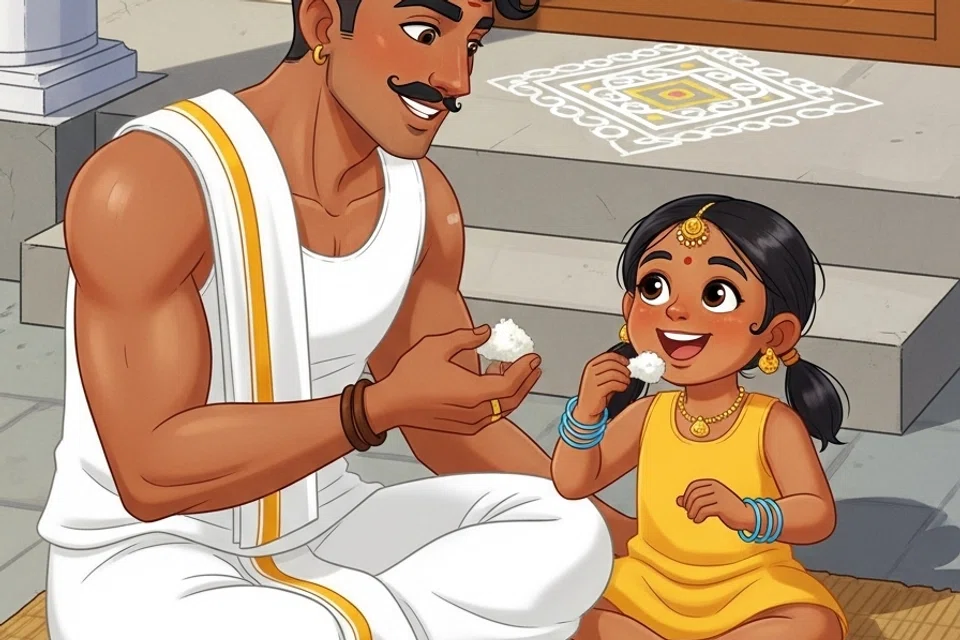 பொங்கல் தயாரானதும், வேலன் ஒரு வாழை இலையில் பொங்கலை வைத்தார். சூரியனுக்கு நன்றி கூறிவிட்டு, வேலனும் கயலும் அந்த இனிப்பான பொங்கலைச் சுவைத்தனர்.