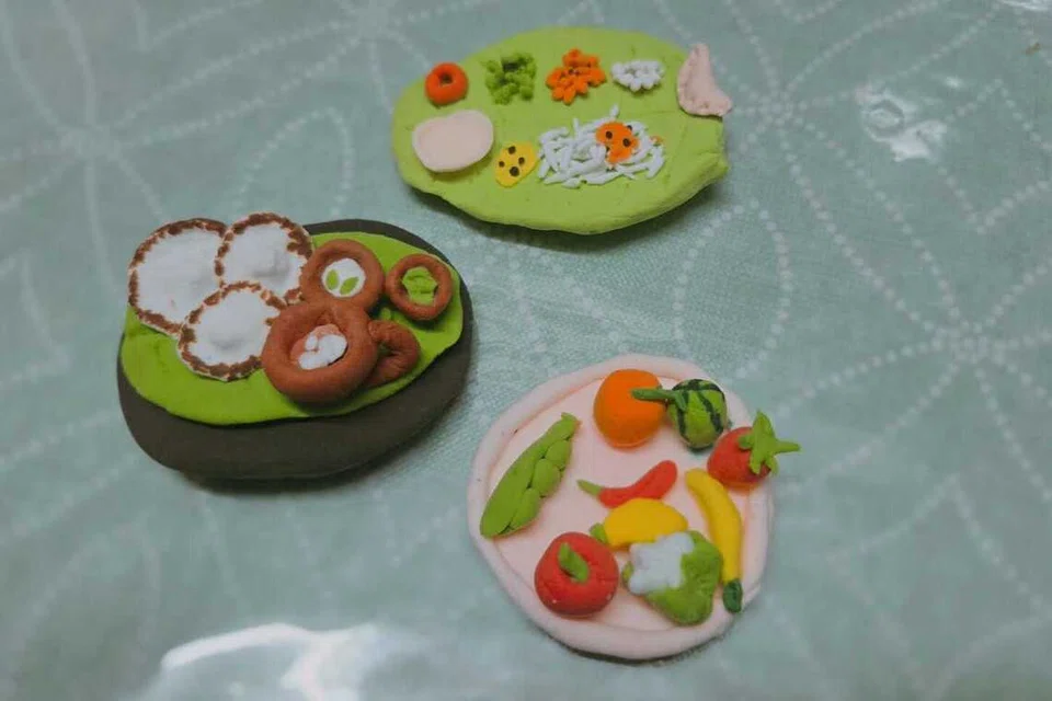 “ஏர் கிளே’ என்ற ஒருவகை களிமண்ணால் என் மகள் வண்ண உணவுப் பொருள்களை வடிவமைக்கிறாள்,” என்று தாயார் திருவாட்டி துர்கா சண்முகம், 40, கூறினார்.