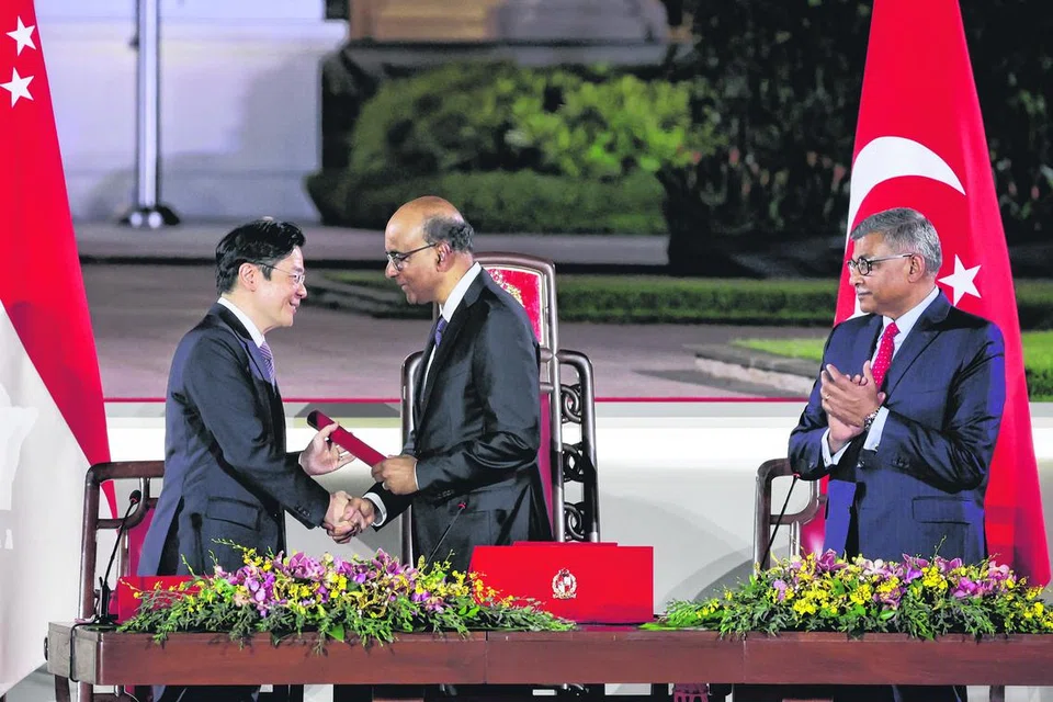 அதிபர் தர்மன் சண்முகரத்னம், திரு லாரன்ஸ் வோங்கிடம் பிரதமராக நியமிக்கப்பட்டதற்கான ஆணையை வழங்கினார்.