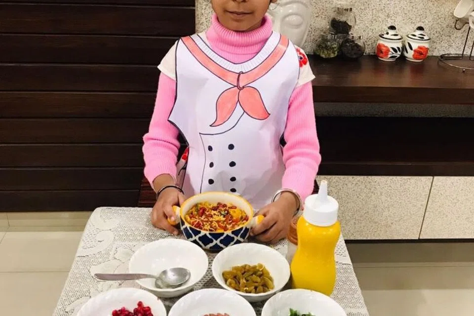 கரண்டி, அளவு கலன்கள், உடை அழுக்காகாமல் முன்புறம் கட்டும் துணி (ஏப்ரன்), தொப்பி உள்ளிட்ட சமையலுக்குத் தேவையான உபகரணங்களுடன் வரும் இந்த அமைப்பு, ஒரு முழுமையான சமையல் கலைஞர் எனும் உணர்வைத் தருகிறது.