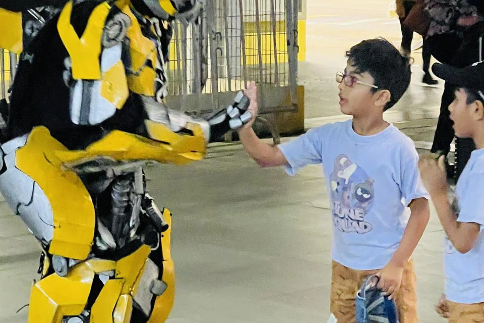 அண்மையில் சுவா சூ காங் பெருவிரைவு ரயில் நிலையத்தின் வெளியே ‘டிரான்ஸ்ஃபார்மர்ஸ்’ கதாபாத்திரமான ‘பம்புல்பீ’யாக வேடமிட்ட ஒருவர் மக்களுடன் புகைப்படம் எடுத்துக்கொண்டு நன்கொடைத் திரட்டினார்.