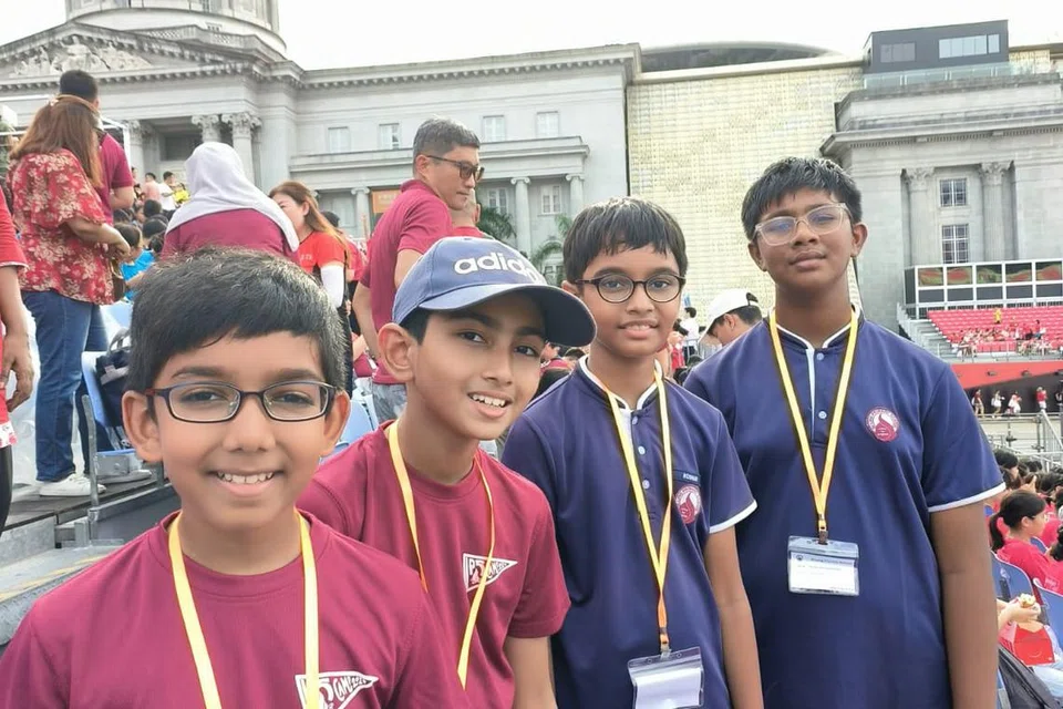 சிங்கப்பூர் ஆயுதப் படையைச் சேர்ந்த செஞ்சிங்க அணியின் ஐந்து வான்குடை வீரர்கள் தரையிறங்கியதை மாணவர்கள் தேசியக் கொடிகளை அசைத்துக்கொண்டும் ஒலி எழுப்பும் கருவிகளை இயக்கிக் கொண்டும் தங்கள் மகிழ்ச்சியை வெளிப்படுத்தினர்.