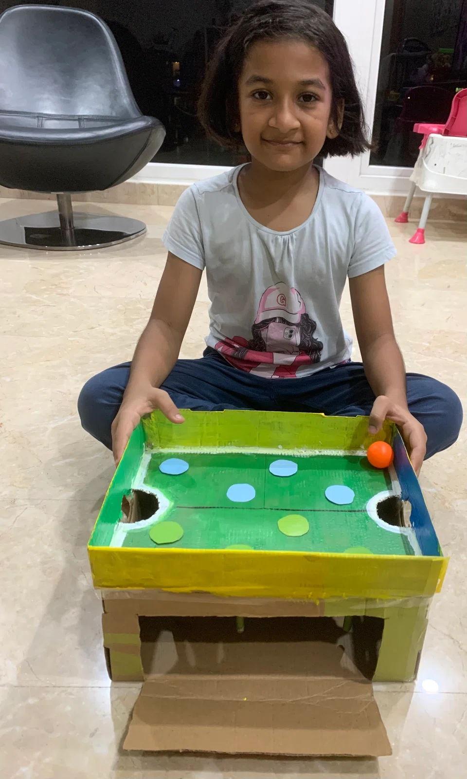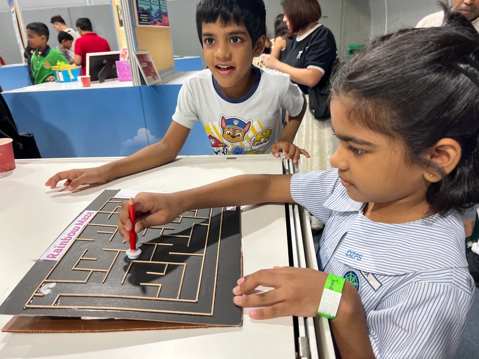 ‘டிபிஎஸ்’ அனைத்துலகப் பள்ளியின் ஆசினி முருகேசன், 8, காந்தசக்தியால் ஏரியைக் கடக்கும் தவளையை உருவாக்கினார். - படம்: ரவி சிங்காரம்