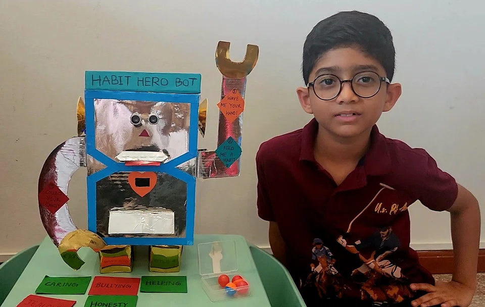 நல்ல பழக்கங்களைச் சொல்லிக் கொடுக்கும் இயந்திரமனிதரை உருவாக்கினார் ‘கேட்டலிஸ்ட்’ விருது வென்ற அக்‌‌ஷத் கோதண்டபாணி, 9. - படம்: அக்‌‌ஷத் தந்தை