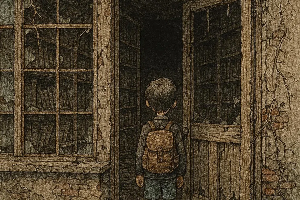 பாழடைந்த தோற்றத்தைக் கண்டுகொள்ளாமல் , ஓர் இறுதியான முயற்சியாக உள்ளே நுழைந்தேன். தீவிரமாகப் புத்தகங்களை ஆய்வு செய்தேன். ஒவ்வோர் ஒடுக்கமான பகுதியையும் கண்காணித்தேன். ஒற்றைத் தீபத்தின் மந்தமான ஒளியில் உடைந்துபோன அலமாரிகளின் மீது என் கைவிரல்கள் தேடியபோது, சோர்வு என் உடலில் படர்ந்தது.