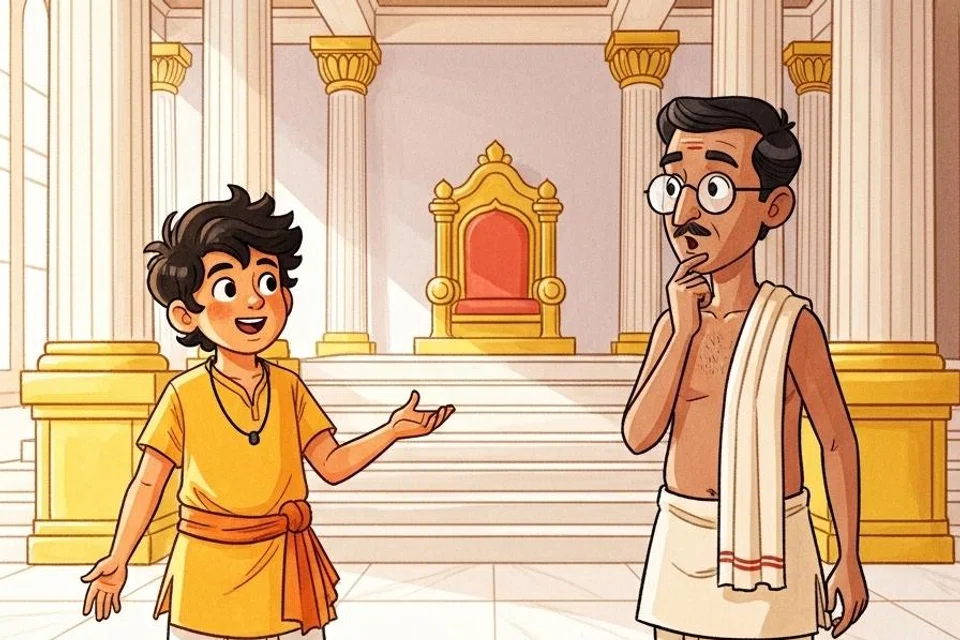 குழப்பத்துடன் வீட்டை அடைந்த அமைச்சரைப் பார்த்து, தன் தந்தை ஏதோ கவலையில் இருப்பதை உணர்ந்தான் அவரது மகன் அறிவன். அவரின் கவலையைக் கேட்டுத் தெரிந்துகொண்ட அறிவன், “தந்தையே! கவலைப்படாதீர்கள். என்னிடம் அதற்கான வழி இருக்கிறது,” என்று தன்னம்பிக்கையுடன் கூறினான்.