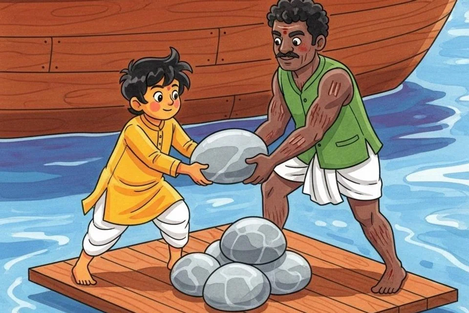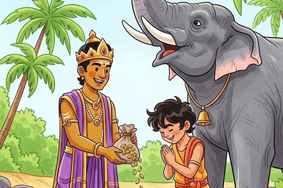 குமணன் என்ற அரசருக்குத் தனது ஆசை யானையான ‘கஜா’ எவ்வளவு எடை இருக்கும் என்று தெரிந்துகொள்ள ஆசை வந்தது. அதனால் அமைச்சரை அழைத்து, “அமைச்சரே, கஜாவின் எடையை நம்மால் தெரிந்துகொள்ள முடியுமா?” என்று கேட்டார். அவ்வளவு பெரிய தராசு நம்மிடம் இல்லையே என்று அமைச்சர் குழப்பமடைந்தார்.