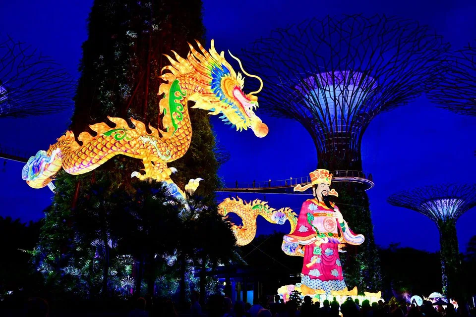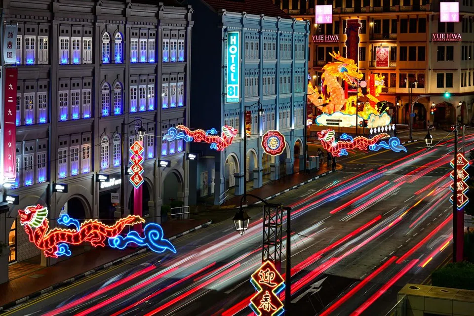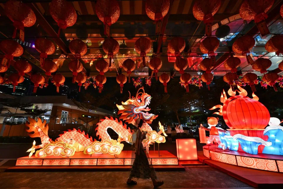 கடல்நாக ஆண்டை வரவேற்பதற்காக சிங்கப்பூரில் காணப்படும் சீனப் புத்தாண்டு வண்ண அலங்காரங்கள்